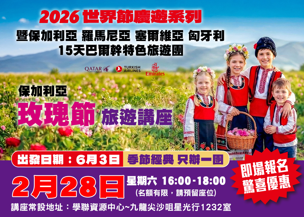 2026 保加利亞玫瑰節盛典遊 (查看行程詳情)